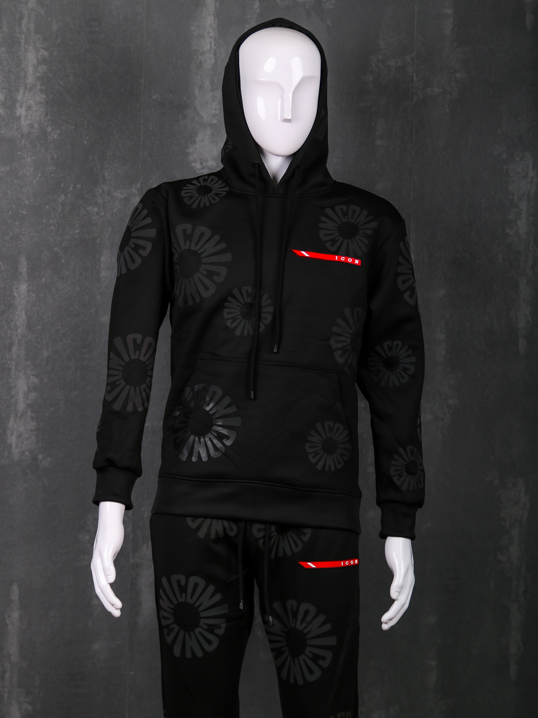 Besonderheiten: Allover-Print „Icon“, Kängurutasche am Hoodie, verstellbare Kapuze, elastischer Bund und Beinabschluss an der Hose